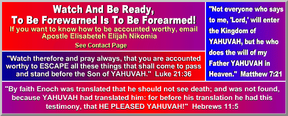 Dalsze pytania: Odpowiedź: Tak, jestem wyświęconym, międzynarodowym pastorem, uprawnionym do głoszenia Ewangelii po całym świecie. Oczywiście pomijając kraje totalitarne, chyba że JAHUSZUA zadecyduje inaczej. Mówię to wszystko biorąc BOGA za świadka, BOGA któremu służę i którego wielbię, JAHUSZUA ha MASZIJACH z Kalwarii i Nazaretu. Otrzymałam licencję niezrzeszonego w żadnym wyznaniu, gdyż denominacje dzielą jedynie ludzi. Przeczytajcie moje świadectwo, a znajdziecie odpowiedź. Nie przyjęłam nawet statusu bezpodatkowego, ponieważ BÓG JAHWEH mi nie pozwolił. Rząd wyrazi zgodę, ale BÓG, któremu służę, nie! To na JAHWEH Jir’eh polegam, aby był moim Jedynym LORDEM, zaspokajającym moje potrzeby, jedynie ON nim jest. Funkcjonuję dzięki datkom miłosierdzia, które są bardzo nieliczne. Ktokolwiek daje tej Misji, otrzymuje nagrodę od samego WSZECHMOGĄCEGO BOGA JAHWEH, a nie od rządu. LORD zaprawdę powiedział, że jeśli przyjmę status bezpodatkowy, to będzie on dla mnie jedynym wsparciem finansowym. Nie przyjmując go jestem wierna temu, co DUCH ŚWIĘTY powiedziała przeze mnie w Proroctwach. To nie moim sposobem postępowania i rozwiązywania spraw mam się kierować, ale tylko wolą JAHUSZUA ha MASZIJACH. Kiedy status bezpodatkowy zostaje odebrany, ja nie będę musiała panikować i martwić się o to, jak teraz kierować Misją. I bez tego całkiem dobrze sobie radzę, polegając na moim TATUSIU BOGU, aby zaspokajał wszystkie moje potrzeby, według JEGO bogactw w Niebie. Każde dane mi Proroctwo zadziwia mnie nawet bardziej niż was wszystkich. Zostało mi powiedziane, a następnie potwierdzone, że moim zadaniem jest zebranie wojsk na Murze Obronnym, tj. 500 000 Wojowników Gedeona dla JAHUSZUA ha MASZIJACH! To są wojownicy z całego świata. Miałam dwa sny, jeden po drugim, (21-go stycznia, 1997 roku) a następnie jeszcze jeden. Wiele potwierdzeń. Oni będą zebrani poprzez internetową stronę tego Kościoła Bez Ścian, z rozmaitych stron świata. Moje życie musi być Święte, akceptowalne w oczach BOGA, któremu służę. Żaden wstyd ani hańba nie mogą być znalezione w tej Misji, gdyż jestem rozliczana za te zaszczytne powołanie, które otrzymałam. Nie prosiłam o nie i pytam BOGA: - Dlaczego ja? Wtedy przypomina mi, że ON sam jest GARNCARZEM, a ja jestem tylko gliną . Formuje mnie ON tak, jak zechce, a ja nie mam nic na ten temat do powiedzenia. Dobrze, przeczytajcie proszę poniżej, dlaczego nazywam siebie „Reverend”. Odpowiedzi te przyszły do mnie podczas modlitwy, czy powinnam kontynuować pisanie „Rev.” przed swoim nazwiskiem. Zastanawiam się swoją drogą, czy w ogóle pytalibyście o to, gdybym była mężczyzną, a nie kobietą? Moim panieńskim nazwiskiem jest Elijah. Każdy jednak może mieć takie imię (jak np. hollywoodzki aktor Elijah Wood, czy Elijah Blue – syn piosenkarki Cher) i nadać je swojemu dziecku. A więc to nie imię jest ważne, ale duch kryjący się za nim. Zdecydowałam się używać tego nazwiska wyłącznie dla chwały, honoru i czci JAHUSZUA ha MASZIJACH, aby MU służyć i wielbić GO oraz stawiać na pierwszym miejscu we wszystkim, co czynię. Używam więc tego imienia, danego mi przez mojego ziemskiego ojca, ale powtarzam, liczy się sposób w jaki to robię, czy przynoszę pod tym imieniem chwałę JAHUSZUA, czy też hańbę i wstyd? Wierzę, że poprzez moje życie wielbię i wynoszę Imię ponad wszelkie imię, JAHUSZUA ha MASZIJACH z Kalwarii i Nazaretu.