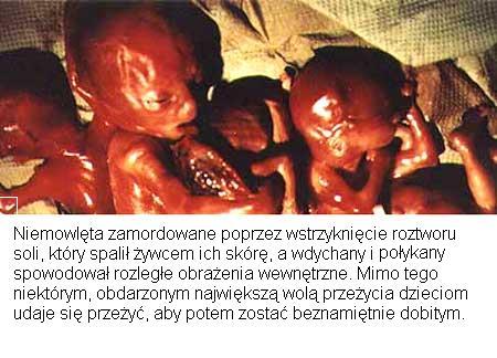 Niemowlęta w łonach matek (uprzedmiotowione jako 'płody') są mordowane na rożne sposoby: