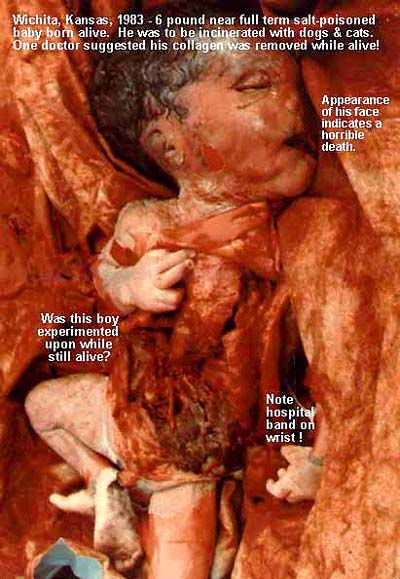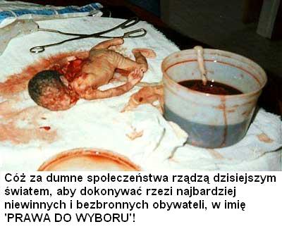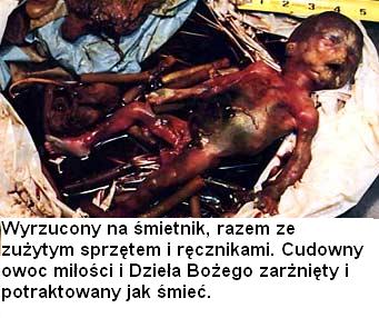 na kawałki w łonach matek i usuwane przez wyssanie. Następnie zwyczajnie wyrzucane do śmieci. Wszystko przeprowadzane jest bez jakiegokolwiek znieczulenia dziecka. Nie sposób nawet podjąć się